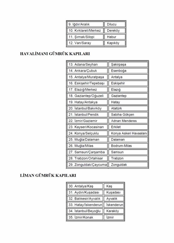 - Listesi ilişikte sunulan gümrük kapılarında ancak Yurtdışı Seçmen Kütüğüne kayıtlı Türk Vatandaşı seçmenler oy kullanabilecektir.