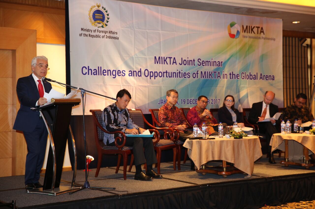 Endonezya Dışişleri Bakanlığı’nın evsahipliğinde, Sayın Büyükelçimiz, Kore Büyükelçisi, Meksika ve Avustralya Maslahatgüzarları, Endonezya Dışişleri Bakanlığı Çok Taraflı İşler Genel Müdürü'nün konuşmacı olarak yeraldığı “Davos stili” olarak hazırlanan MIKTA Semineri 19 Aralık 2017 tarihinde Cakarta’da düzenlenmiştir.